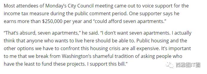 ▌「这个法案」要求小我年收入跨越25万美金或者家庭年收入跨越50万美金的居平易近需要缴纳额外的2.25%的收入税。据西雅图当地报道,